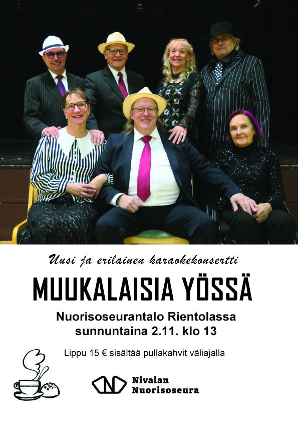 Nuorisoseuran karaokeharrastajien uudenlainen esitys "Muukalaisia yössä" on käsikirjoitettu cabaree-tyyppinen ilottelu. Lippu 15 €, sisältää pullakahvit väliajalla. Tervetuloa nauttimaan erilaisesta…