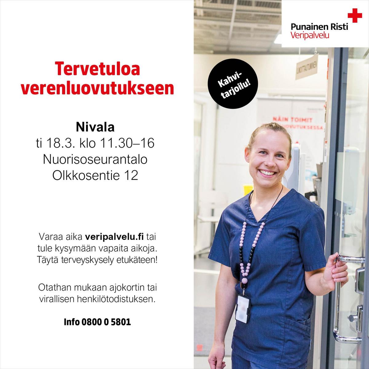 Tervetuloa käymään verenluovutuksessa nuorisoseuralla! Luovuttajille kiitokseksi hyvästä työstä on tarjolla hyvät kahvit ja sämpylät, hedelmät, mehut ym.!